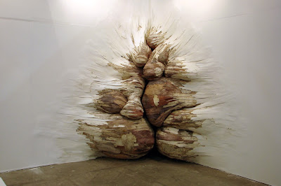 La onda sería, porque no entonces, pensar en los edificios, las mesas, los objetos que nos rodean como rotos, como la fragmentación de una densidad original, como una expansión constante e infinita de materia. A partir de eso pensaba, en cuantos niveles de expansión no somos capaces de ver, o sea, cuanto de esa expansión se escapa de nuestra percepción, pero al mismo tiempo cuanto se fuga por la ausencia de mecanismos que permitan registrarla.